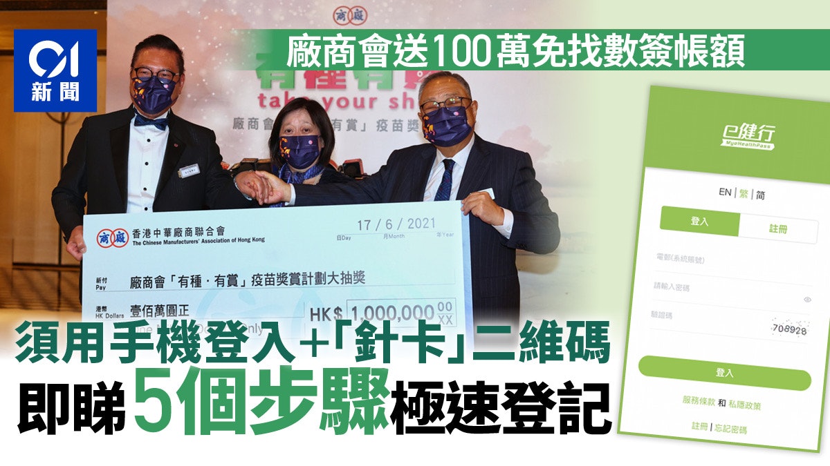 疫苗抽獎 廠商會送100萬免找數簽帳額5個步驟完成登記 香港01 社會新聞