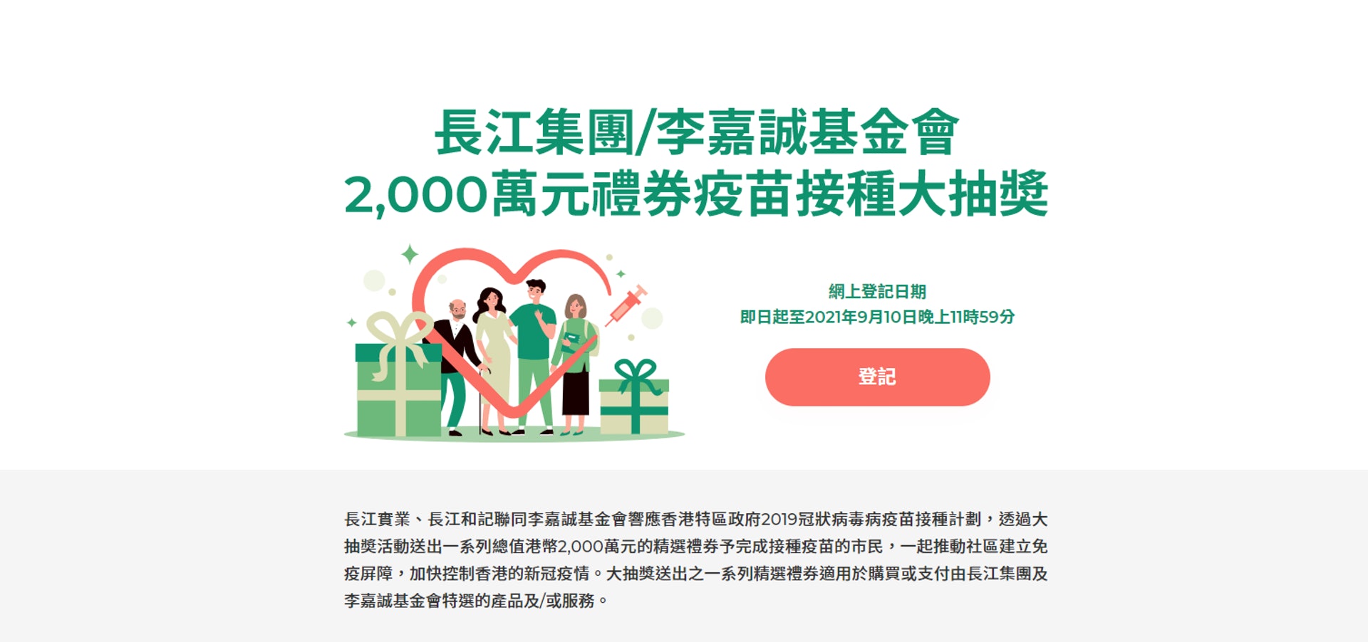 點知天下 點好生活 疫苗優惠 打疫苗抽獎 長江集團2000萬大抽獎 今日起接受登記 長江集團 李嘉誠基金會推出疫苗獎賞計劃 向已接種疫苗的市民提供頭獎可獲得價值